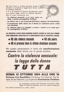 5 febbraio 1983 – Volantino manifestazione contro la votazione della Camera sulla legge contro la violenza sessuale